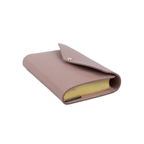 Biblia in husa handmade piele autentica, cu clapetă si capsă, mărime medie, roz pal, index, margini aurii, cuv. lui Isus cu rosu [057 HBL]