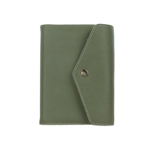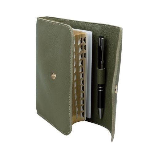 Biblia in husa handmade piele autentica, cu clapeta si capsa, marime mica, verde oliv, index, margini aurii, cuv. lui Isus cu rosu [047 HCL]