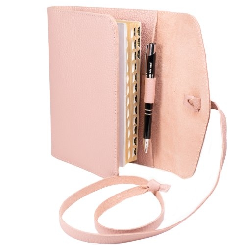 Biblia in husa handmade piele autentica, cu clapeta si snur, marime medie, roz plămâniu, index, margini aurii, cuv. lui Isus cu rosu [057 SNU]