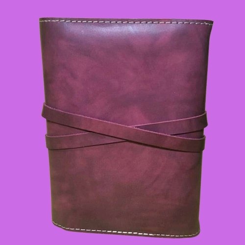 Biblia in husa handmade piele autentica, cu clapeta si snur, marime mica, bordo, index, margini aurii, cuv. lui Isus cu rosu [047 HCS]