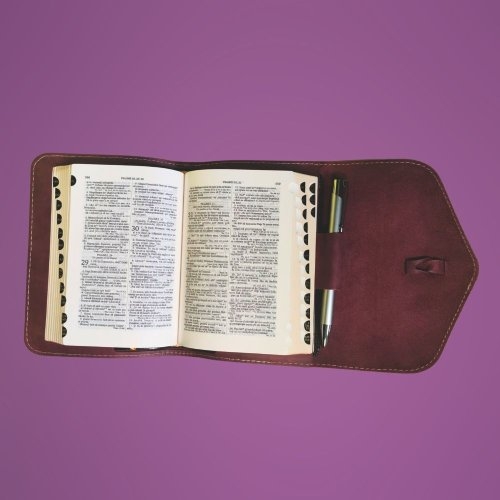 Interiorul Bibliii noastre este la fel de remarcabil. Dispune de un spatiu special conceput pentru a pastra un pix, astfel incat sa puteti marca sau sublinia versetele importante pe masura ce cititi. Marginile aurii si indexul pe margine faciliteaza navigarea rapida prin pagini si identificarea pasajelor cheie.