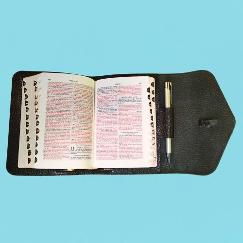 Interiorul Bibliii noastre este la fel de remarcabil. Dispune de un spatiu special conceput pentru a pastra un pix, astfel incat sa puteti marca sau sublinia versetele importante pe masura ce cititi. Marginile aurii si indexul pe margine faciliteaza navigarea rapida prin pagini si identificarea pasajelor cheie.