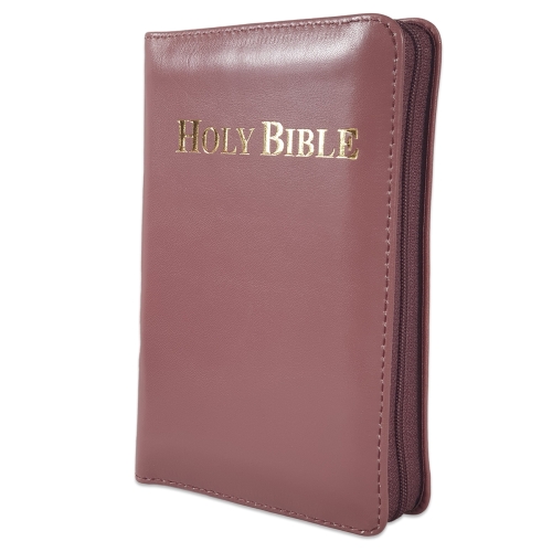 Biblia in lb. engleza, King James Version, mica, piele, culoare plamaniu, aurita, fermoar, cuv. lui Isus cu rosu