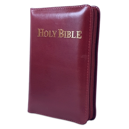 Biblia in lb. engleza, King James Version, mica, piele visinie, aurita, fermoar, cuv. lui Isus cu rosu
