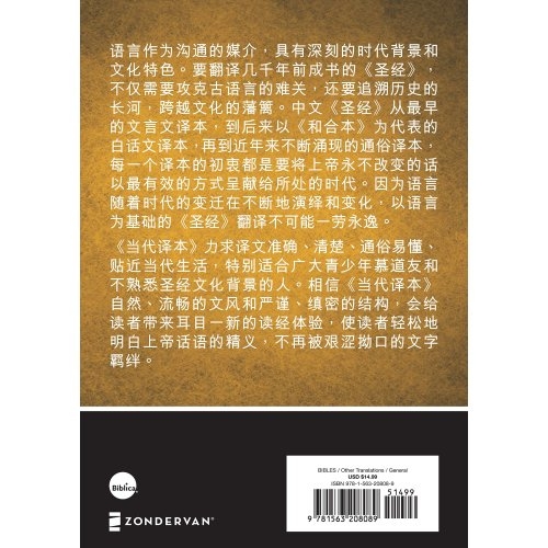 The Chinese Contemporary Bible (CCB) in simplified script is a clear, accurate, easy-to-understand translation and is uncompromisingly faithful to the original Bible texts.