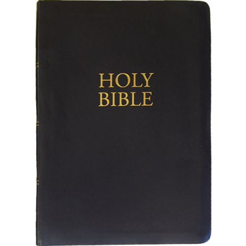 Biblia in limba engleza, King James Version, marime mare, coperta din piele ecologica gri inchis, cuv. lui Isus cu rosu