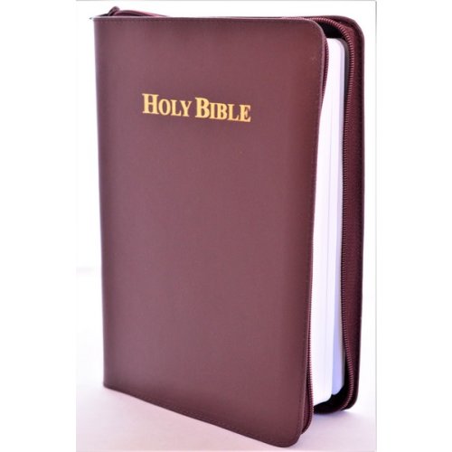 Biblia in limba engleza, King James Version, marime mare, coperta din piele, visiniu, cuv. lui Isus cu rosu