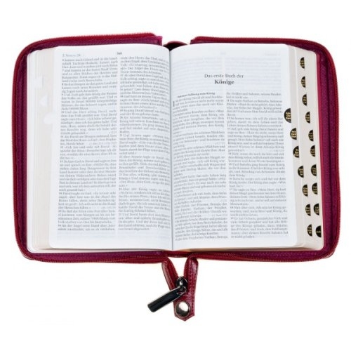 Biblia in limba germana - editia Neue Luther Bibel, piele ecologica, marime 14x21cm, culoare visnie, fermoar, index, margini aurii