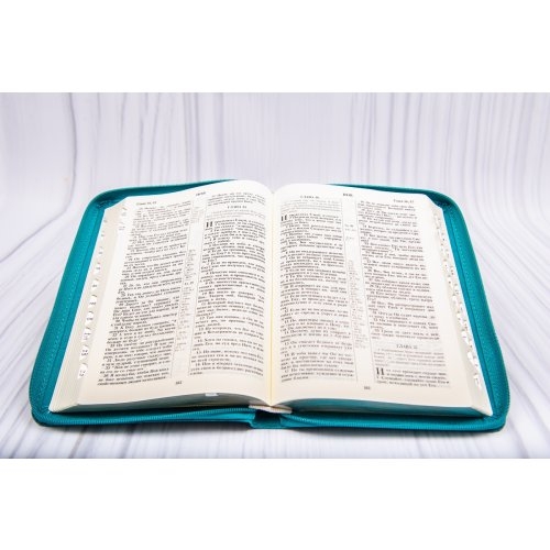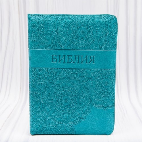 Biblia in limba rusa, medie, coperta piele ecologica florala, fermoar, margini argintii, index [045 ZTI]
