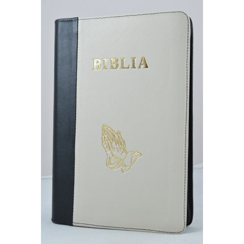 Biblia mare, coperta piele, culoare negru cu bej, fermoar, simbol maini [VS 073 PF]