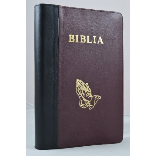 Biblia mare, coperta piele, culoare negru cu visiniu, fermoar, simbol maini [VS 073 PF]