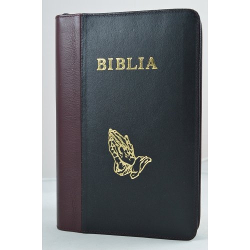 Biblia mare, coperta piele, culoare visiniu cu negru, fermoar, simbol maini [VS 073 PF]