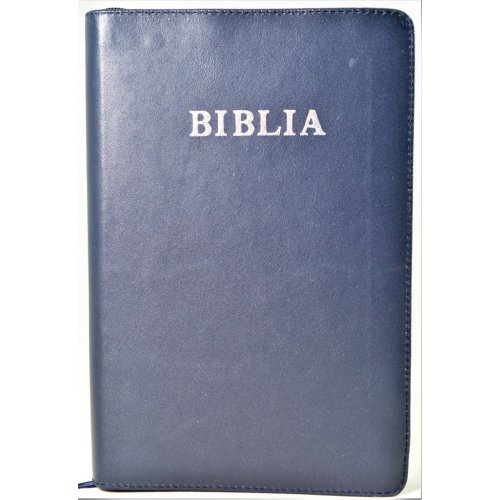Biblia mare, din piele, bleumarin inchis, fermoar, margini argintii, simbol - simpla, cuv. lui Isus in rosu [073 PFR]