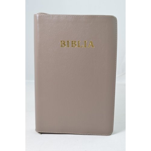 Biblia mare, din piele, culoare kaki, fermoar, margini aurii, simbol - simpla, cuv. lui Isus in rosu [ SB 073 PFR]