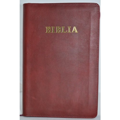 Biblia mare, din piele, culoare stacojiu, fermoar, margini aurii, simbol - simpla, cuv. lui Isus in rosu [ SB 073 PFR]