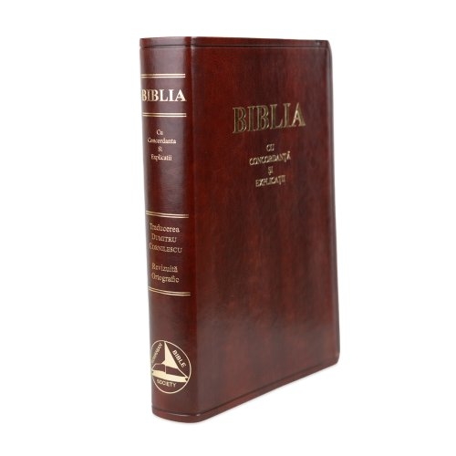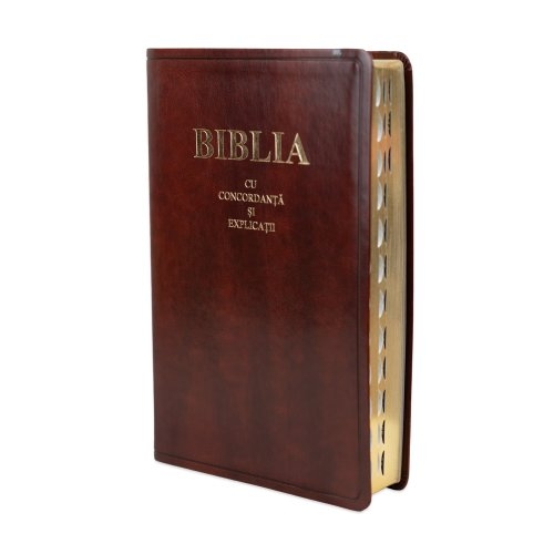 Biblia mare, din piele ecologică, maro, cu concordanta, explicatii, index, fara fermoar, cuv. lui Isus cu rosu [CO 77 TI]