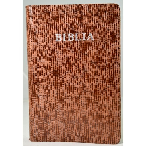 Biblia mare, din piele, maro texturat, fermoar, margini argintii, simbol - simpla, cuv. lui Isus in rosu [073 PFR]