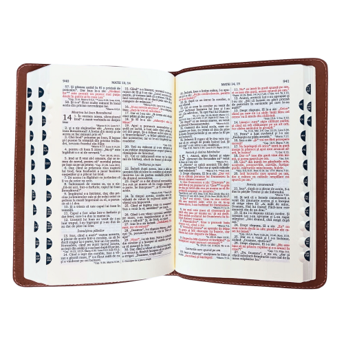 Biblia mare, piele, maro marmorat, argintata, index, fara fermoar, cuv. lui Isus cu rosu, simbol coroana [073 PI]