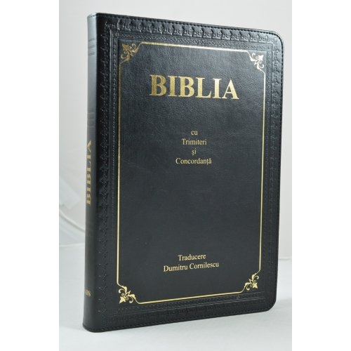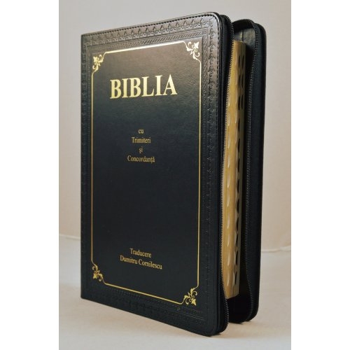 Biblia cu concordanta, mare, scris foarte mare, piele, neagra, fermoar, index, cuv. lui Isus in rosu [083 ZTI]