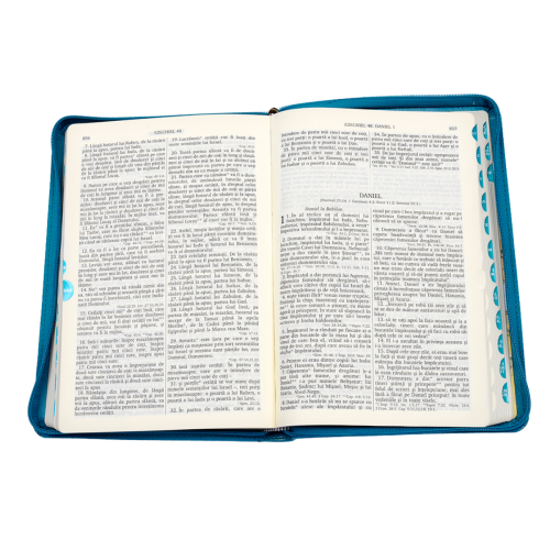 Biblia mărime mare, copertă imitație piele, albastra, fermoar, index, margini argintii, hărți [075 ZTI]