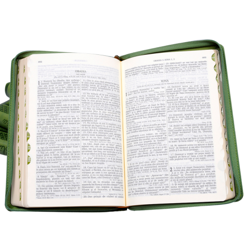 Biblia mărime mare, copertă imitație piele, verde, fermoar, index, margini aurii, hărți [075 ZTI]