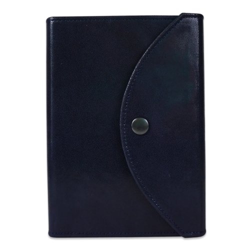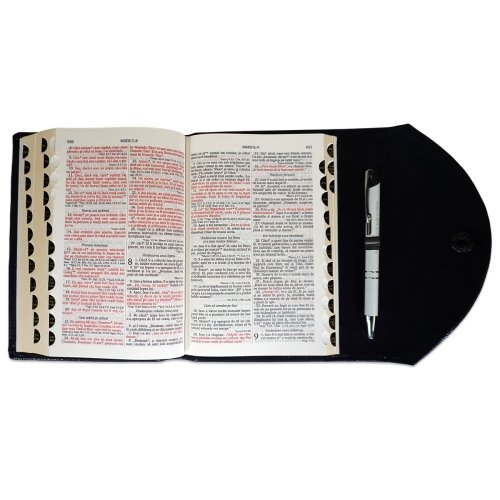 Biblia marime medie, albastru sidefat, piele, inchidere clapeta cu capsa 2, margini aurii, index, cuv. lui Isus cu rosu [MAR 057 PCI]