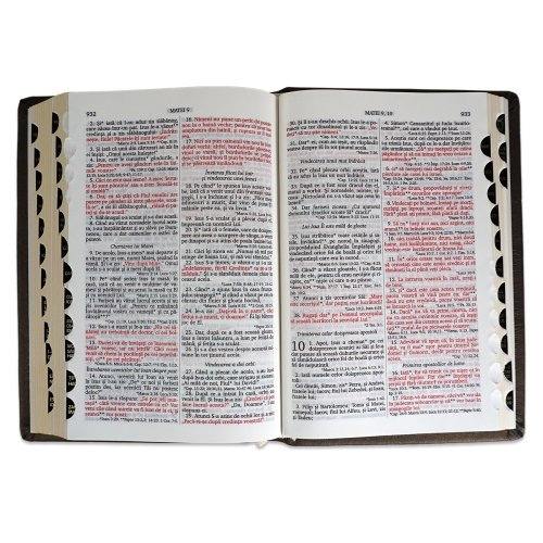 Biblia marime medie, bej, piele, fara fermoar, margini aurii, index, cuv. lui Isus cu rosu [MAR 057 PI]