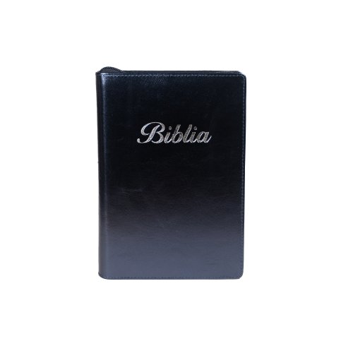 Biblia marime medie, bleumarin inchis, piele, fermoar, margini aurii, index, cuv. lui Isus cu rosu [MAR 057 PFI]