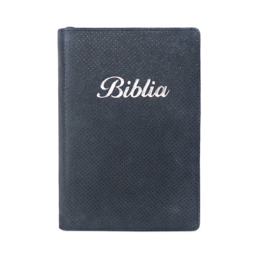 Biblia marime medie, bleumarin texturat, piele, fermoar, margini aurii, index, cuv. lui Isus cu rosu [MAR 057 PFI]