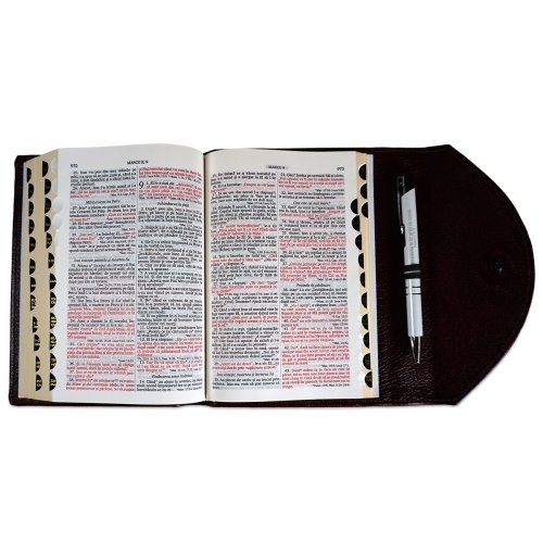 Biblia marime medie, bordo, piele, inchidere clapeta cu capsa 1, margini aurii, index, cuv. lui Isus cu rosu [MAR 057 PCI]