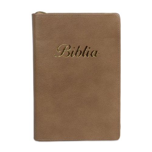 Biblia marime medie, culoare, bej închis, piele, fermoar, margini aurii, index, cuv. lui Isus cu rosu [MAR 057 PFI]
