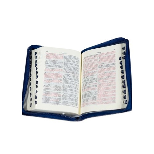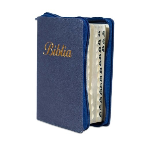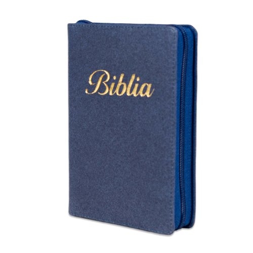 Biblia marime mica, culoare bleumarin, piele, fermoar, margini argintii, index, cuv. lui Isus cu rosu [047 PFI]