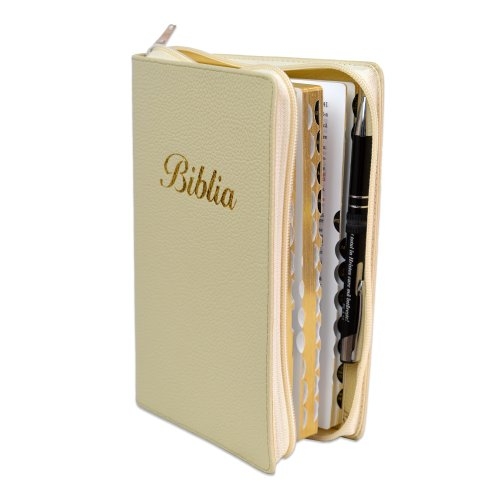 Biblia marime medie, culoare crem, piele, fermoar, margini aurii, index, cuv. lui Isus cu rosu [MAR 057 PFI]