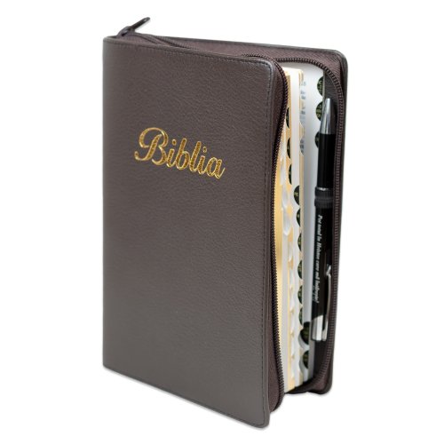 Biblia marime medie, culoare maro brun, piele, fermoar, margini aurii, index, cuv. lui Isus cu rosu [MAR 057 PFI]