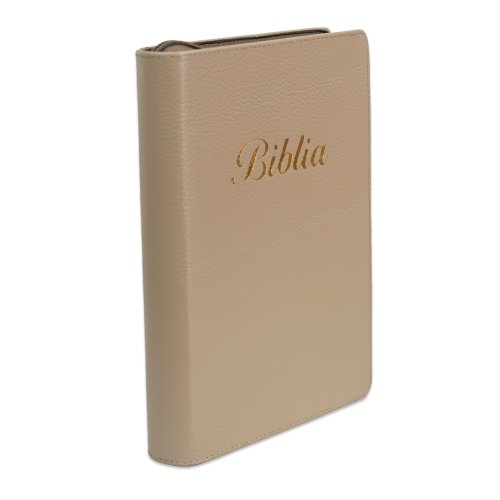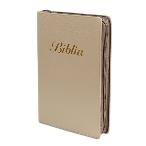 Biblia marime medie, culoare maro cappuccino, piele, fermoar, margini aurii, index, cuv. lui Isus cu rosu + pix [MAR 057 PFI]