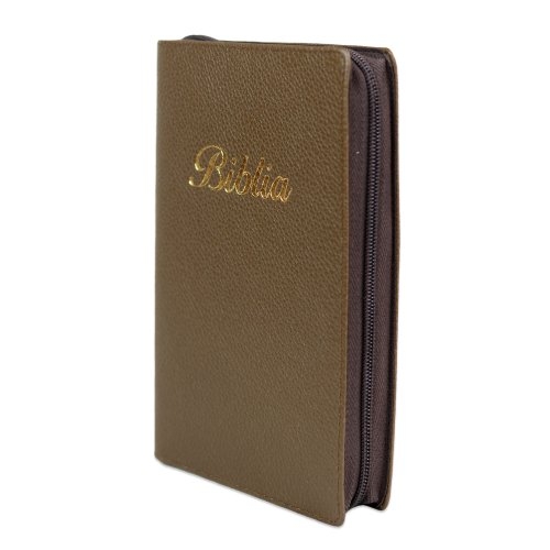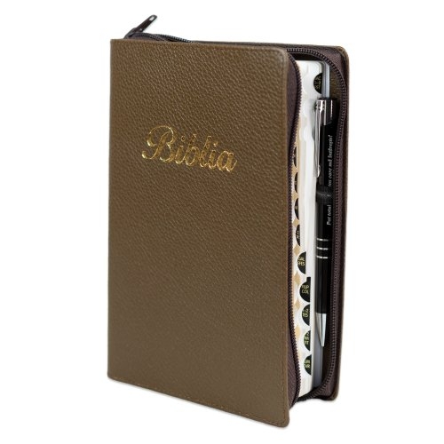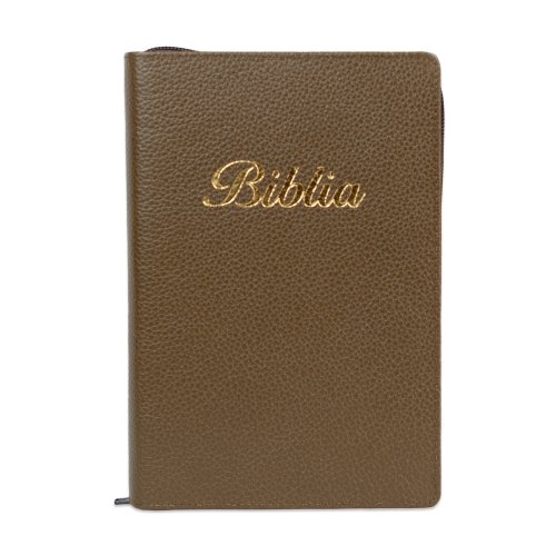 Biblia marime medie, culoare, maro închis, piele, fermoar, margini aurii, index, cuv. lui Isus cu rosu + pix [MAR 057 PFI]