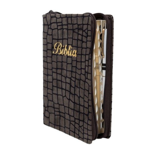 Biblia marime medie, culoare, maro închis texturat, piele, fermoar, margini aurii, index, cuv. lui Isus cu rosu [MAR 057 PFI]