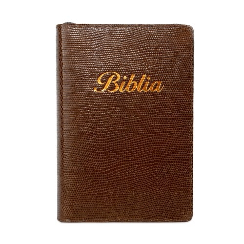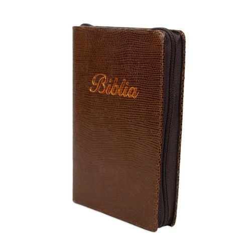 Biblia marime medie, culoare, maro închis texturat, piele, fermoar, margini aurii, index, cuv. lui Isus cu rosu [MAR 057 PFI]