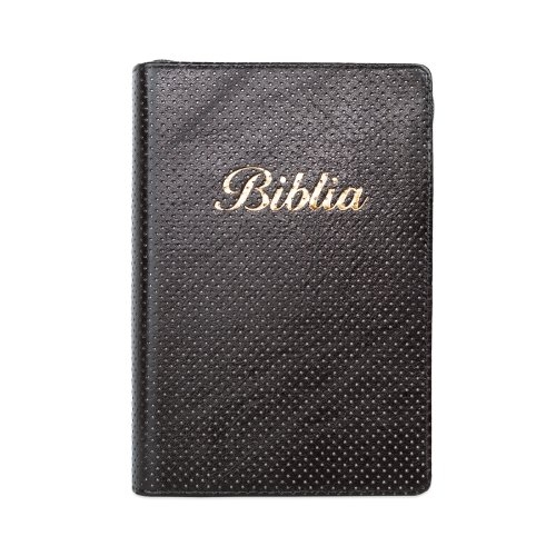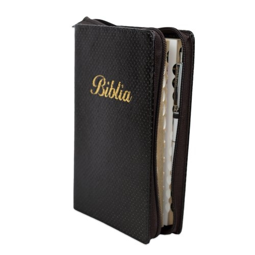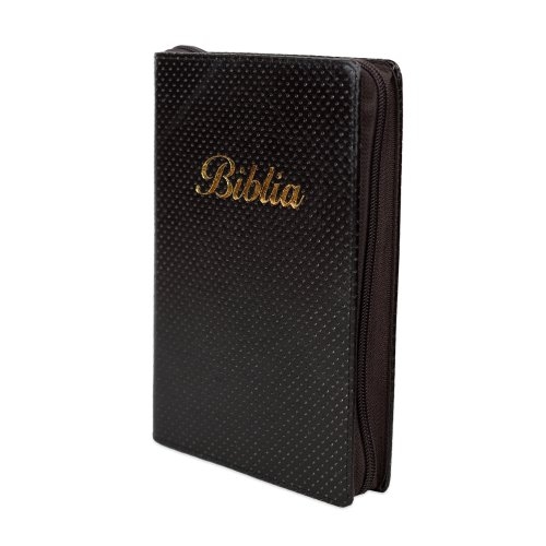 Biblia marime medie, culoare, maro închis texturat, piele, fermoar, margini aurii, index, cuv. lui Isus cu rosu [MAR 057 PFI]