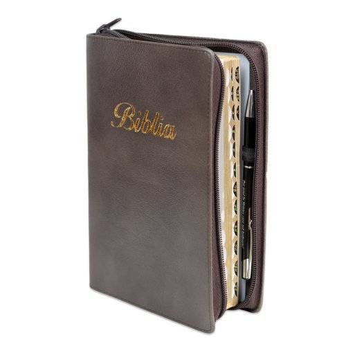 Biblia marime medie, culoare maro pamantiu, piele, fermoar, margini aurii, index, cuv. lui Isus cu rosu [MAR 057 PFI]