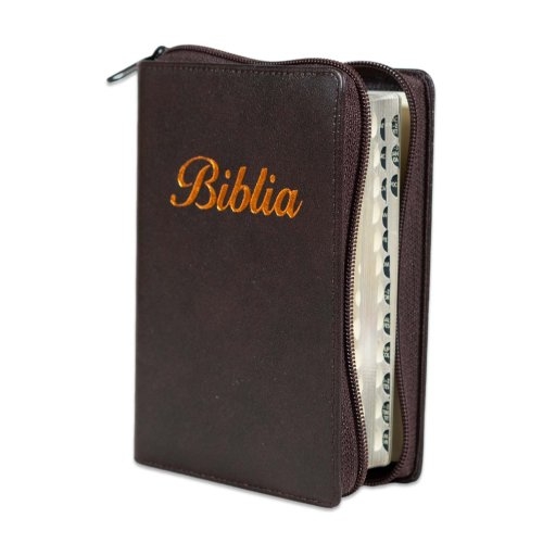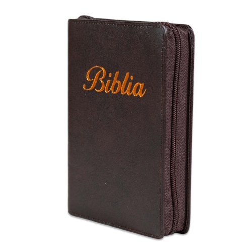 Biblia marime mica, maro, piele, fermoar, margini argintii, index, cuv. lui Isus cu rosu [047 PFI]