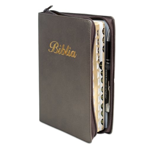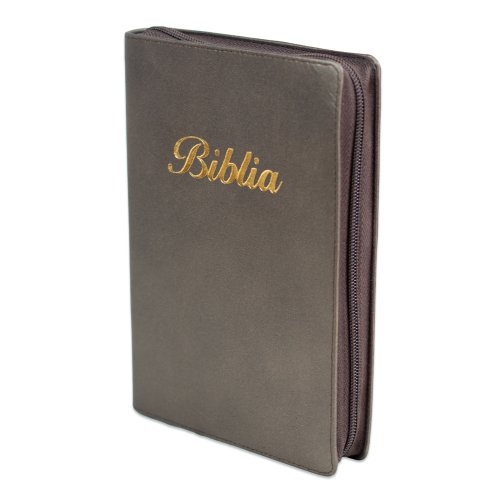 Biblia marime medie, culoare maro sidefat, piele, fermoar, margini aurii, index, cuv. lui Isus cu rosu [MAR 057 PFI]