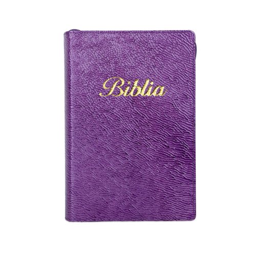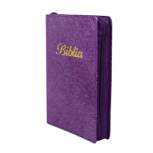 Biblia mărime medie, culoare mov texturat, piele, fermoar, margini aurii, index, cuv. lui Isus cu rosu [MAR 057 PFI]