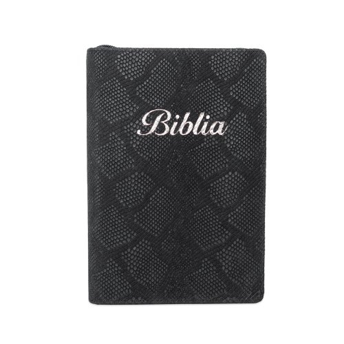 Biblia marime medie, culoare negru texturat, piele, fermoar, margini aurii, index, cuv. lui Isus cu rosu [MAR 057 PFI]