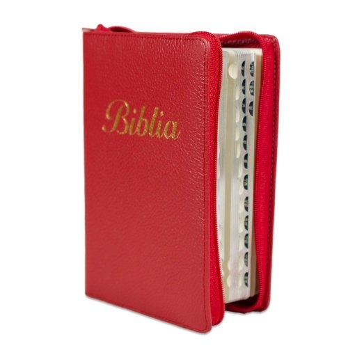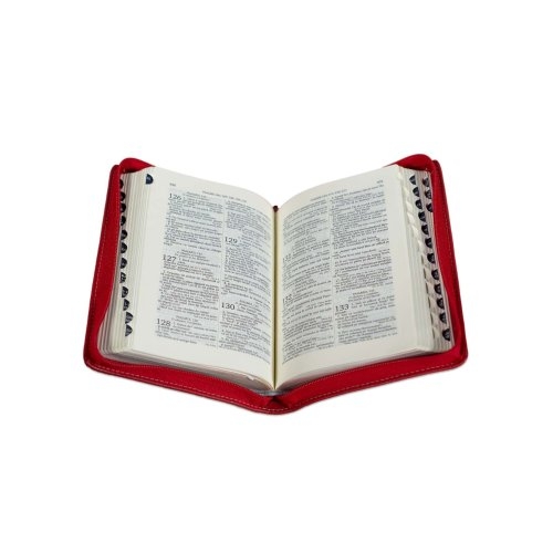 Biblia marime mica, rosie, piele, fermoar, margini argintii, index, cuv. lui Isus cu rosu [047 PFI]