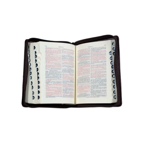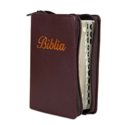 Biblia marime mica, visiniu inchis, piele, fermoar, margini argintii, index, cuv. lui Isus cu rosu [047 PFI]
