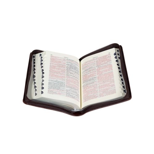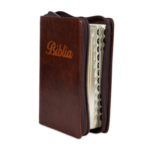 Biblia marime mica, maro, piele, fermoar, margini argintii, index, cuv. lui Isus cu rosu [047 PFI]