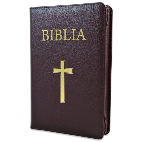 Biblia marime medie, din piele, visinie, fermoar, index, cu cruce [053 PFI]