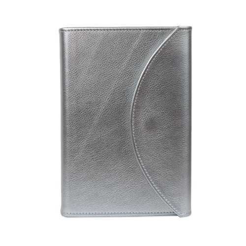 Biblia marime medie, gri deschis sidefat, piele, inchidere clapeta cu capsa 1, margini aurii, index, cuv. lui Isus cu rosu [MAR 057 PCI]