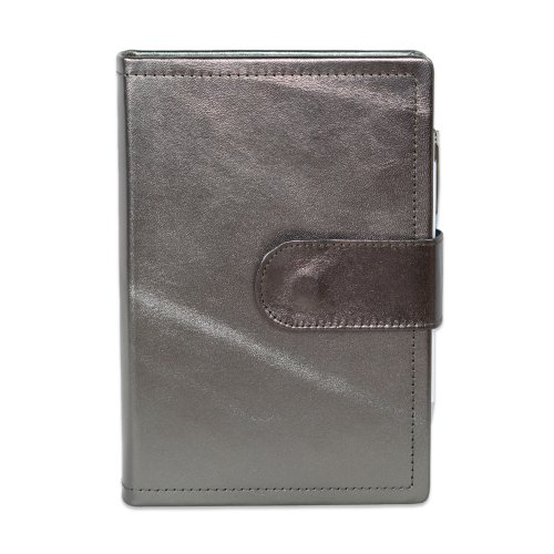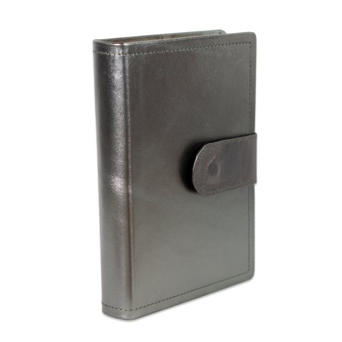 Biblia marime medie, gri închis sidefat, piele, inchidere baretă cu capsă, margini aurii, index, cuv. lui Isus cu rosu [MAR 057 PBI]